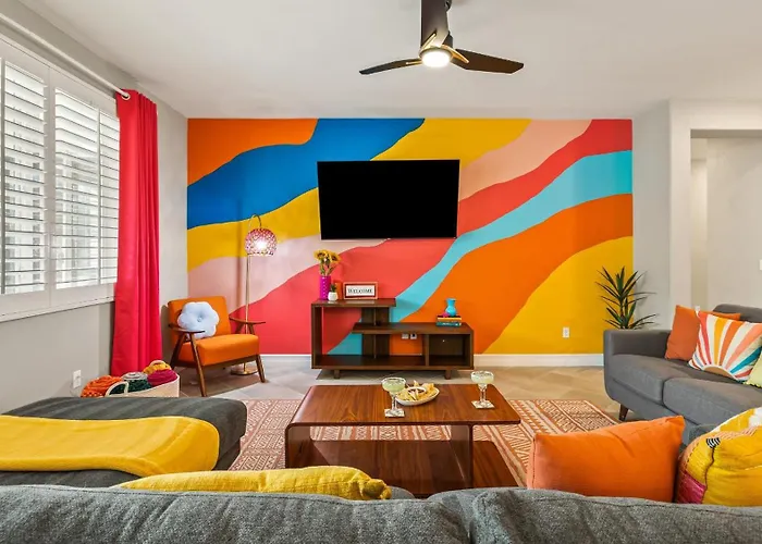 Se puede llegar al aeropuerto Internacional de Palm Springs en 35 minutos en coche, y atracciones naturales como el Rancho Las Flores Park and Event Venue están a 6 km. Los huéspedes pueden disfrutar de la proximidad el Empire Polo Club, que está a 2 km. Situados a a unos 4 km de Shields Date Garden, la Kaleidoscope By Avantstay Colorful Escape Pool se encuentra también a unos 2 km de lugares culturales como la Coachella Valley History Museum.